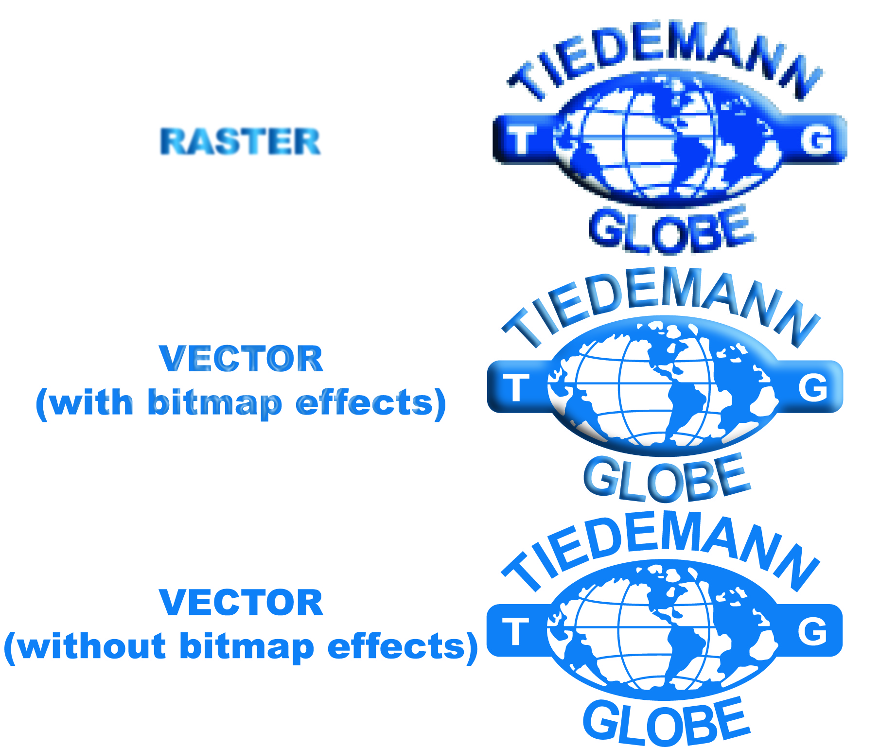 Bitmap effects can be used in conjunction with vector graphics to create a “blur” or “bevel/3D” effect to give a closer look to certain designs than only vector can. This is useful for printing purposes such as digital printing, but cannot be used for screenprinting, etc.