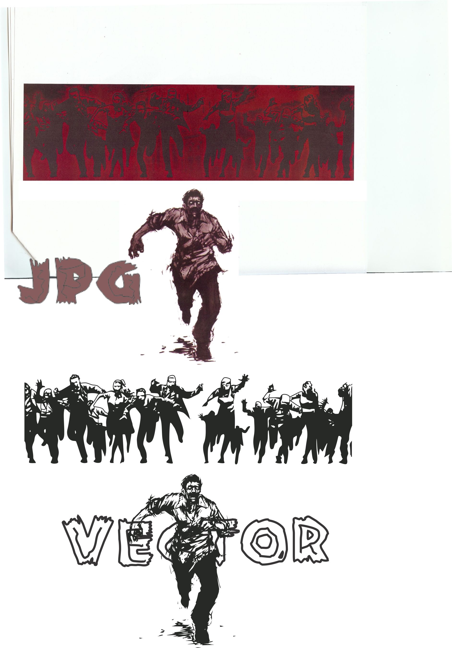 Look out, zombies! Here is an awesome vector conversion sample of a group of zombies that appear to be running. It takes an artist redrawing an image like this to capture the feeling you need for this type of design to really come across properly.